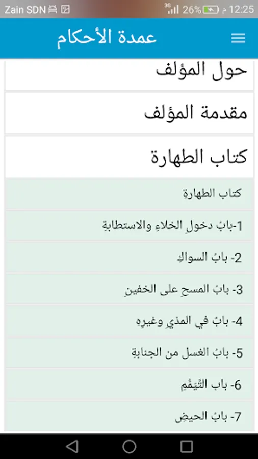 An application that deals with the book Umdat al-Ahkam by Hafiz Taqi al-Din Abd al-Ghani al-Maqdisi in the form of books, some of which contain gifts and others do not contain chapters.