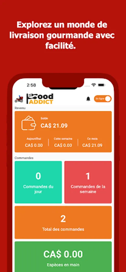 Food Addict provides a great user experience for delivery boys and makes it easy to deliver delicious food to customers efficiently. This application allows delivery people to manage their orders, track their deliveries in real time and provide fast and reliable service. With Food Addict Delivery, delivery people can connect with restaurant partners and customers, ensuring a seamless delivery experience for everyone. It is the essential tool for African food delivery professionals in Canada, providing convenience, speed and excellence with every delivery