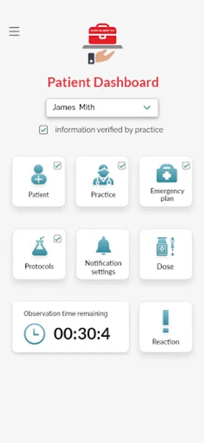 Your safety is our priority. The app will provide real-time guidance for the management of any dose reactions (according to your allergist-prescribed action plan, or a standard food allergy action plan for Palforzia patients), including personalized medication names and doses. All reactions and treatments will be logged in the record and shared with your allergist (if they have signed up for the Web Portal).