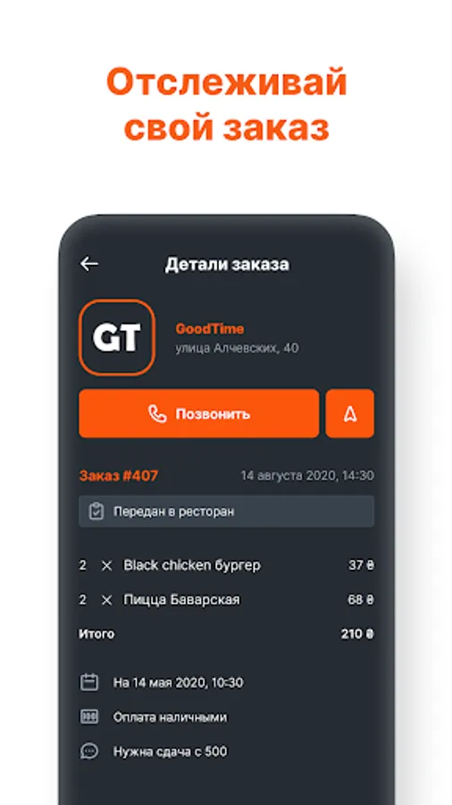 Pre-order in the GoodTime food bar network directly from all over your smartphone quickly and conveniently. It is possible to track the status of your order and pick it up without waiting.
