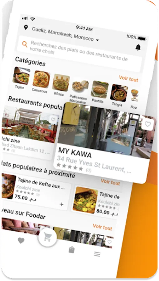 Check menus, prices, favorite the best restaurants, and order takeout or food delivery online in Morocco through Foodar. Follow your order delivery process and pay within the app or with cash. Track all your orders and enjoy Moroccan food again and again.