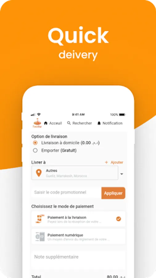 Besides having a super-easy food ordering process, our food delivery online app collaborates with reliable drivers so you can get your food fast. From ordering UI to the Moroccan food delivery, everything is enjoyable with our food delivery Morocco app.