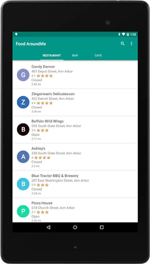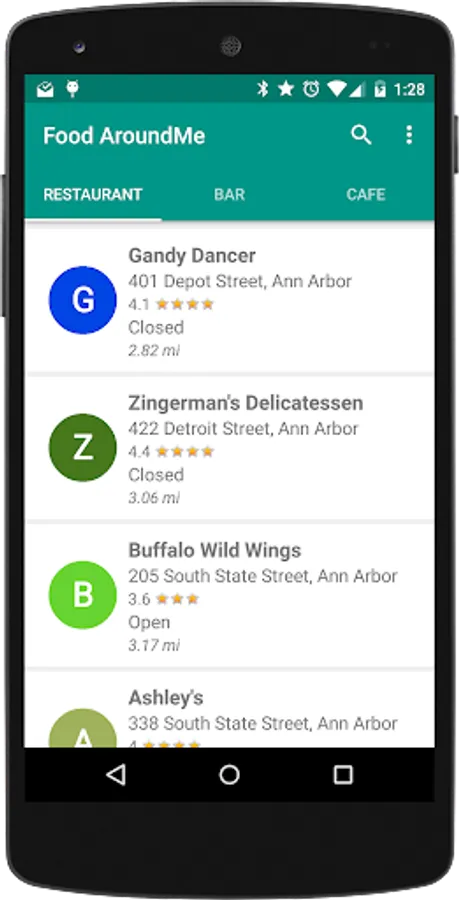 Food Around helps people to find restaurants/bar/cafe in near locations and review user rating and comments. Application by default displays near location restaurants and capable to search any specific places.
