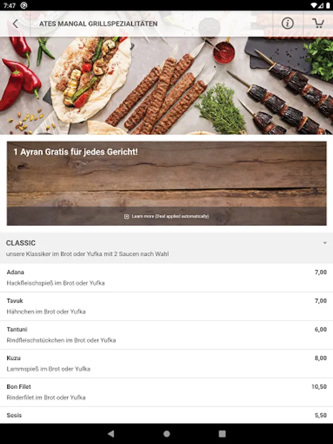 Lieben Sie es, Essen online in unserem Restaurant zu bestellen? Verwenden Sie diese App, um Ihre Erfahrung zu personalisieren und profitieren Sie von der einfachsten und schnellsten Möglichkeit, Ihr Lieblingsessen zu bestellen.