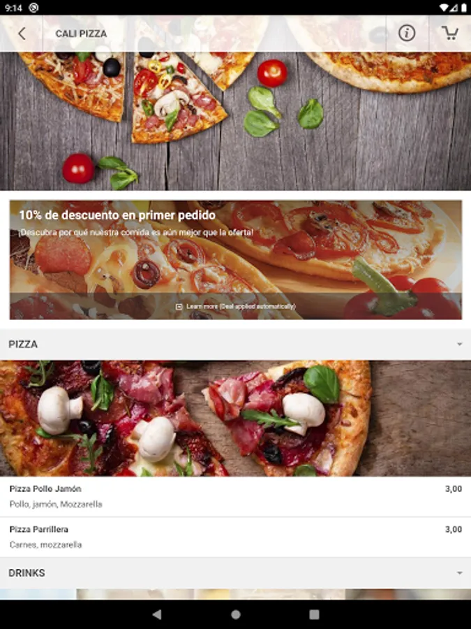 - Pedido en línea optimizado para su dispositivo móvil.
