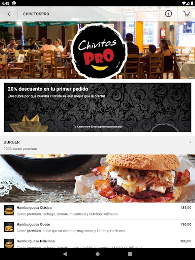 ¿Te encanta ordenar comida en línea desde nuestro restaurante? Utilice esta aplicación para personalizar su experiencia y beneficiarse de la forma más fácil y rápida de pedir su comida favorita. Características: - Pedidos de alimentos en línea optimizados para su dispositivo móvil. - Los detalles de pago están precargados, por lo que puede realizar el pedido con unos pocos clics. - Guarde varias direcciones y elija la preferida al momento de pagar. - Confirmación en tiempo real del pedido, lo que significa que el personal del restaurante confirma su pedido de inmediato, con el tiempo estimado de entrega. Sin intermediarios, sin centro de llamadas confuso, sin promesas excesivas. Esto es solo entre usted y el restaurante.