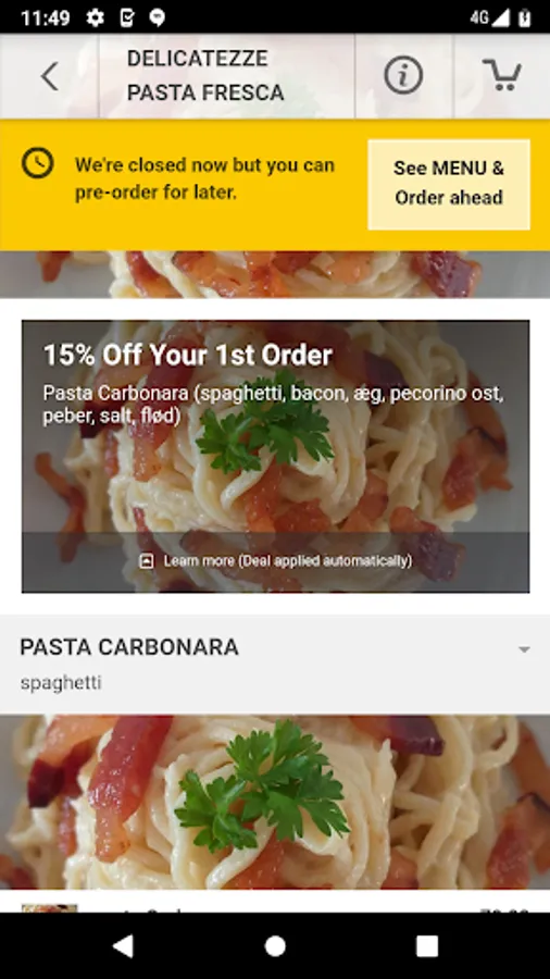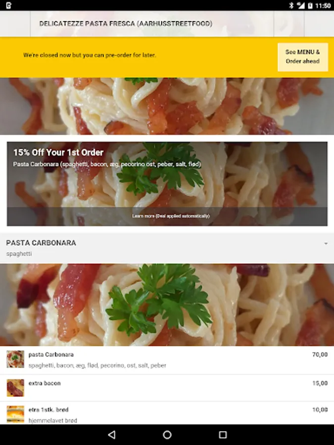 Kan du lide at bestille fra vores restaurant? Brug denne app til at personliggøre din oplevelse og drage fordel af den hurtigste og nemmeste måde at bestille din yndlingsmad på. Funktioner: - Online bestilling optimeret til din mobile enhed. - Kassens detaljer er forududfyldt, så du kan bestille med blot et par klik. - Gem flere adresser og vælg din foretrukne ved kassen. - Bekræftelse af ordren i realtid - hvilket betyder, at personalet på stedet straks bekræfter ordren med angivelse af leveringstid. Ingen mellemmænd, ingen call-centre, ingen misforståelser: du har en direkte linje til din restaurant.