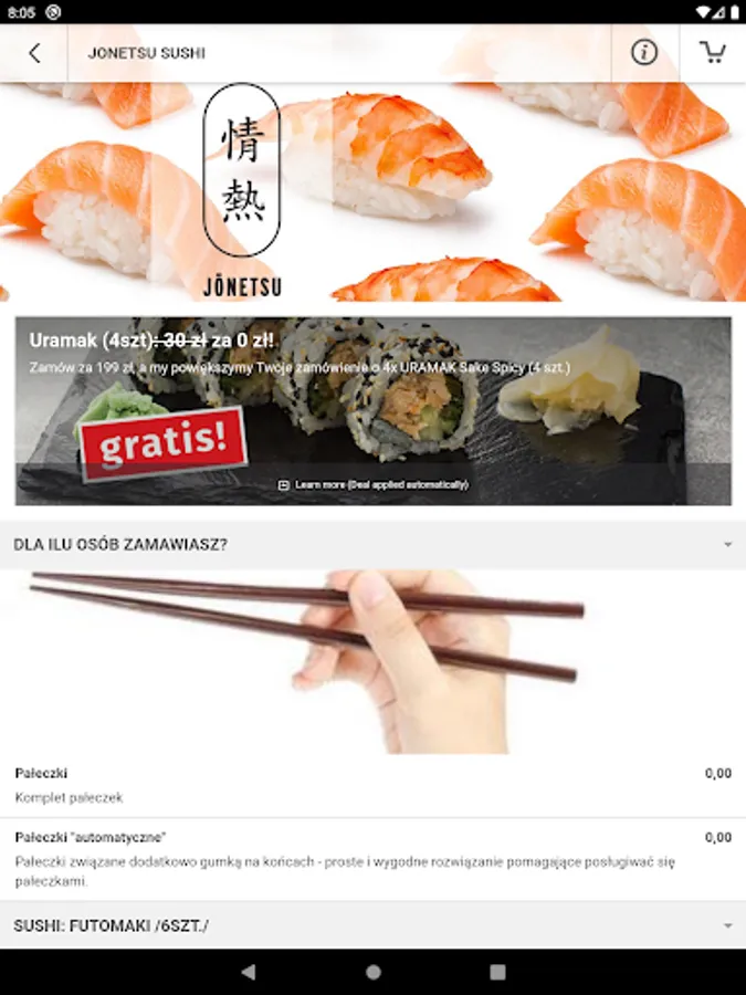 Jeśli jesteś już fanem sushi, to jesteśmy tutaj dla Ciebie. Jeśli nie poznałeś tej kuchni, to dzięki naszej aplikacji będziesz mógł odkryć nowe, przepyszne smaki. Użyj naszej aplikacji do zamawiania, aby skosztować pysznej japońskiej sztuki kulinarnej!