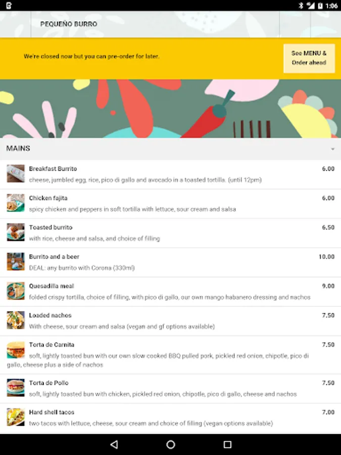 - Online food ordering optimized for your mobile device.