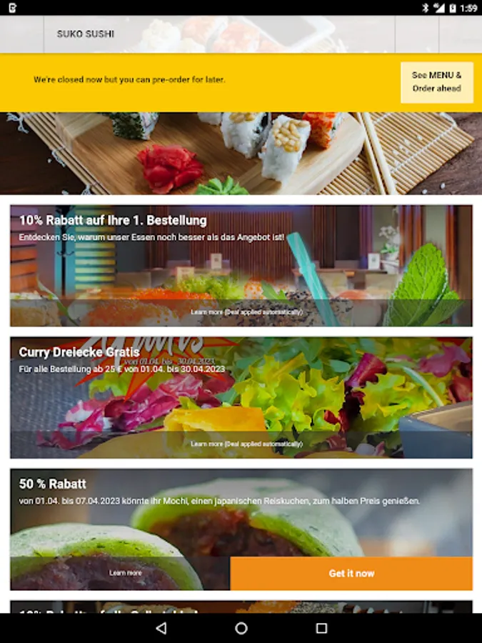 - Online-Essensbestellung optimiert für Ihr mobiles Gerät.