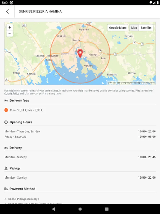 Haluatko tilata ruokaa verkosta ravintolamme? Tämän sovelluksen avulla voit mukauttaa kokemuksesi ja hyötyä helpoimmasta, nopeimmasta tavasta tilata suosikkiruokasi. Ominaisuudet: - Online-ruokatilaukset optimoitu mobiililaitteellesi. - Kassatiedot ovat esitäytettyjä, joten voit tilata vain muutamalla napsautuksella. - Tallenna useita osoitteita ja valitse haluamasi osoite kassalla. - Tilauksen vahvistus reaaliajassa - tarkoittaen, että ravintolan henkilökunta vahvistaa tilauksen heti arvioidun valmiusajan mukaan. Ei keskiaikaisia miehiä, ei hämmentäviä puhelinpalvelukeskuksia, ei yliarvostuksia. Tämä on vain sinun ja ravintolan välissä.
