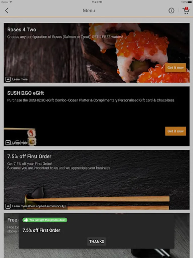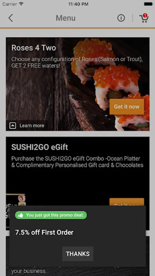 At SUSHI2GO we offer a superlative service and menu that will satisfy all your expectations.