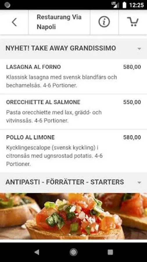 När du handlar direkt genom Via Napolis egna app får du bäst service & priser.