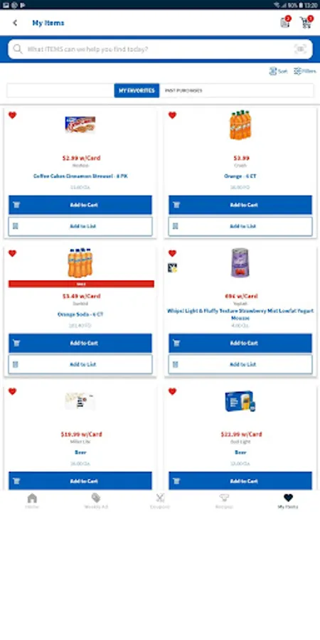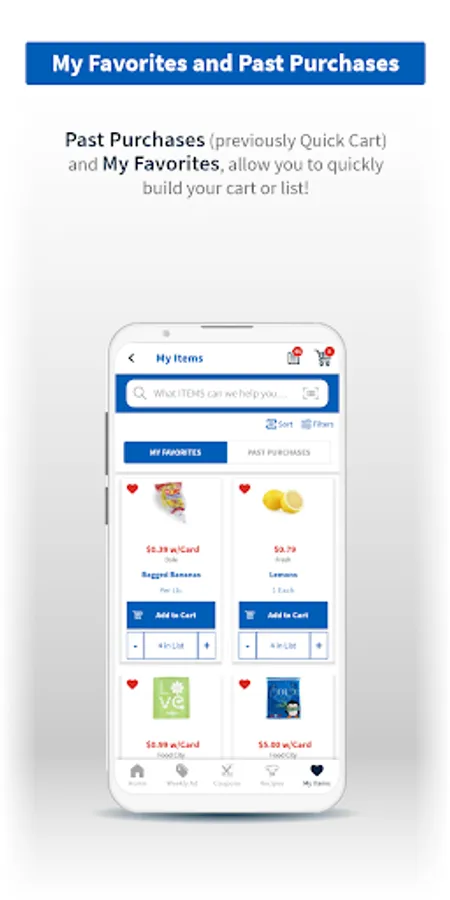 MY FAVORITES & PAST PURCHASES: You can now favorite products you love or buy frequently. In addition, you can view your previously purchased items to build your store or curbside shopping order quickly. This is all now located in one convenient screen.