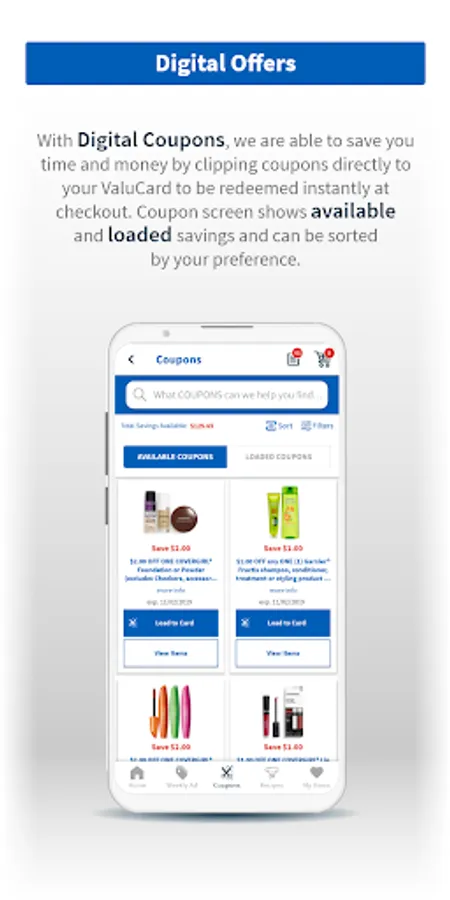 DIGITAL COUPONS: With our Digital Coupons, we are able to save you time and money! Simply click to add them to your ValuCard. Redeem coupons instantly at the checkout with the purchase of qualifying items. Coupons can be sorted by your preference.