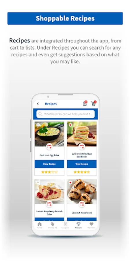 SHOPPABLE RECIPES: Recipes are integrated throughout the app. Under Recipes, you can search for any recipe and even get suggestions based on what you like. Every recipe is shoppable making it a breeze to get the ingredients.