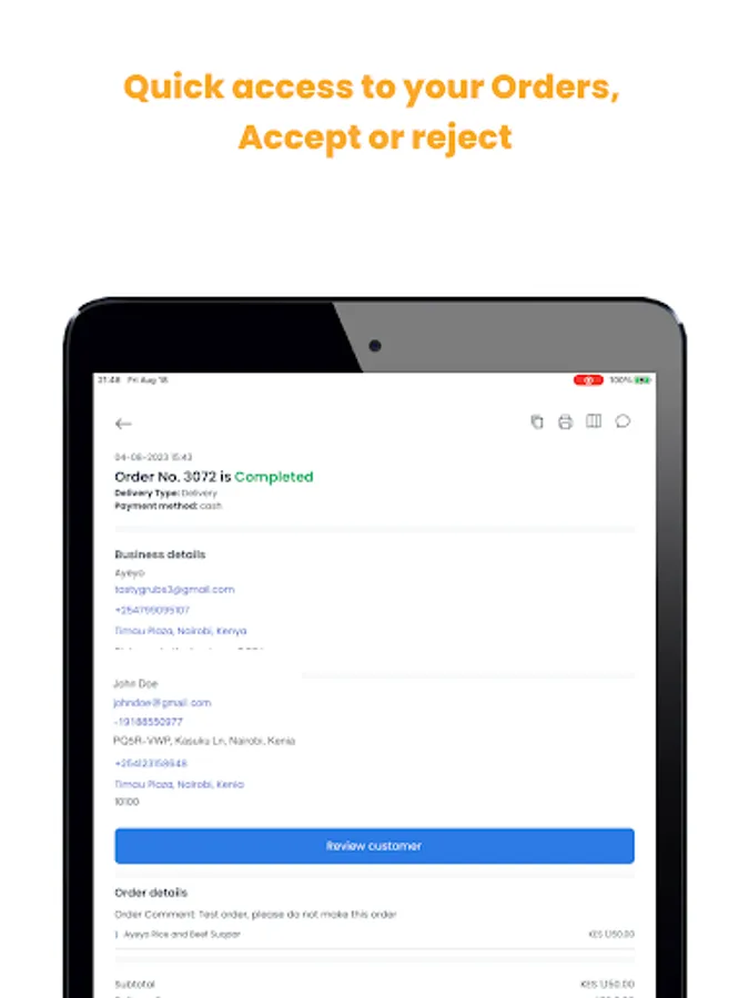 Streamline your restaurant's order management process with Food Dash Orders Manager! Whether you own a bustling bistro, a trendy cafe, or a fine dining establishment, this app is designed to help you efficiently handle incoming orders, enhance customer experience, and boost your business's productivity.