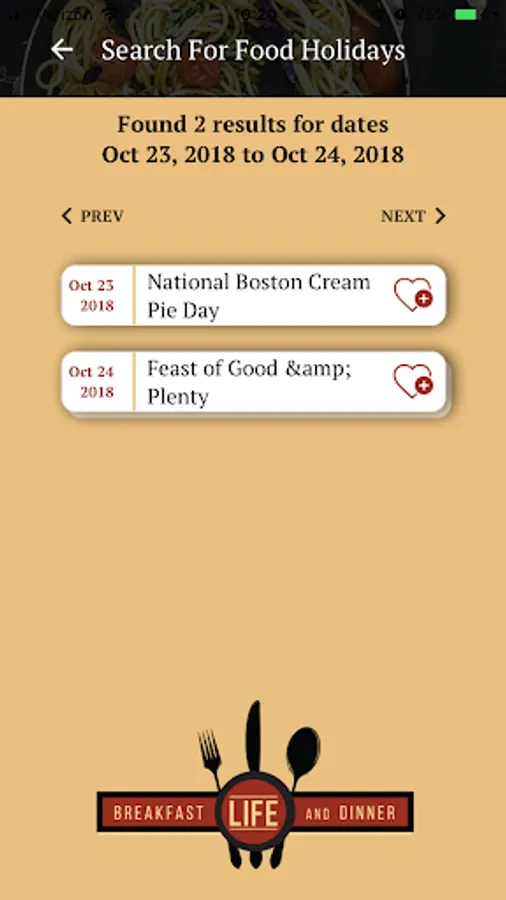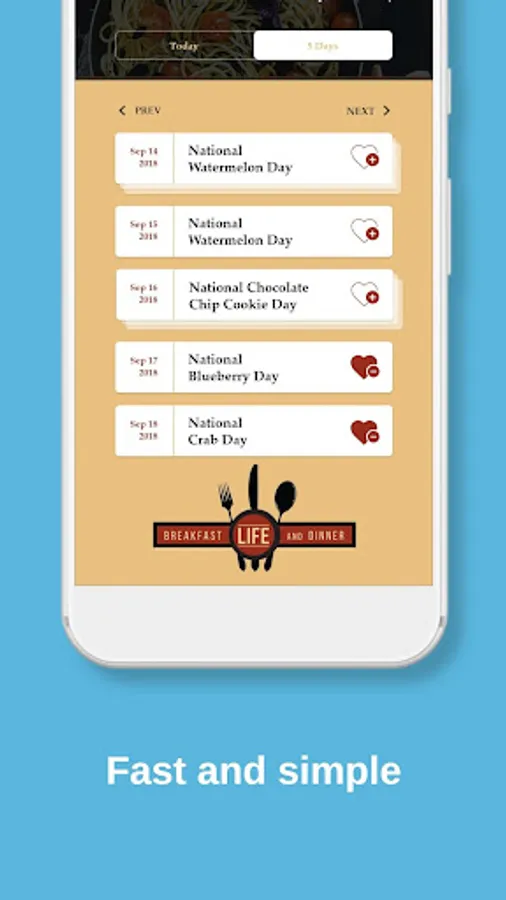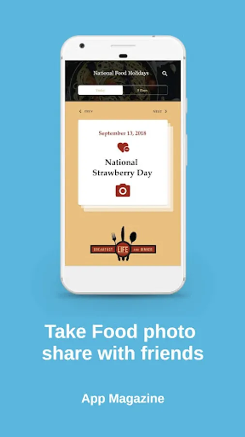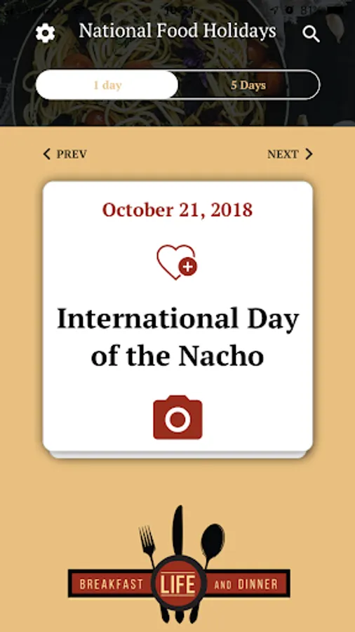 The National Food Holidays app from Breakfast, Life, and Dinner will help you track the foods you love on their celebrated days. Swipe through the calendar to find out what's going on this week. Search for National Burrito Day (April 5th) or find out what's happening on your birthday. Take a photo and share it with a community of like-minded foodie fans on social media. And, support future development of the app by donating from the settings page.