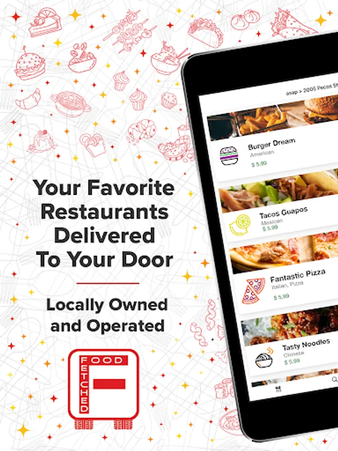 Hungry? Order from FoodFetched! We are a locally owned and operated restaurant delivery service, which means fast delivery, low prices, and the best customer service available. Don’t settle for less. With many local and national restaurants to choose from, you’ll be enjoying your favorite meals in no time. Browse menus, select your items, and sit back and relax while our partner drivers handle the rest.