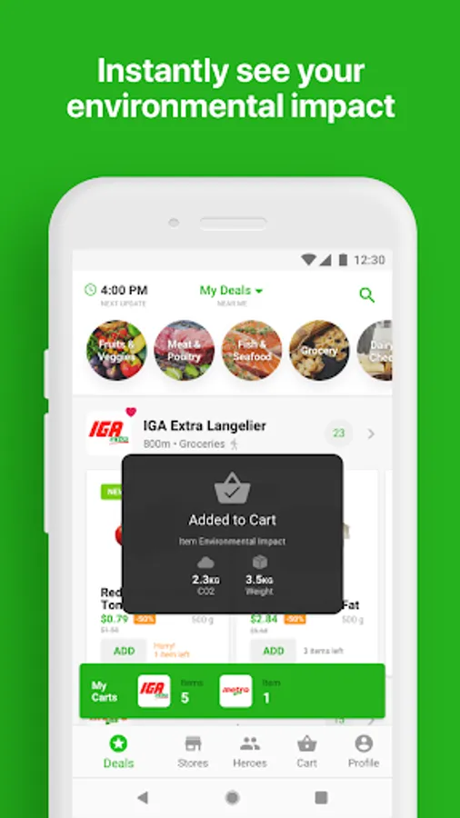 ✔ Track your FoodHero stats (total water, mass and CO2 emissions saved)