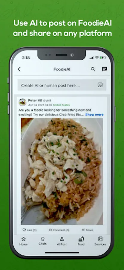Social Sharing: Create your AI post on FoodieAI's foodie media and share with clients, friends and family on any social media, and connect with other foodies around the world.