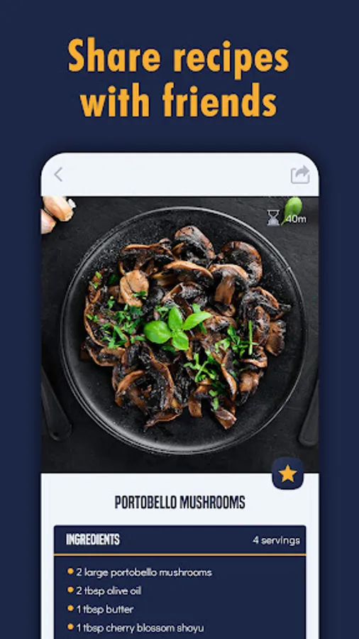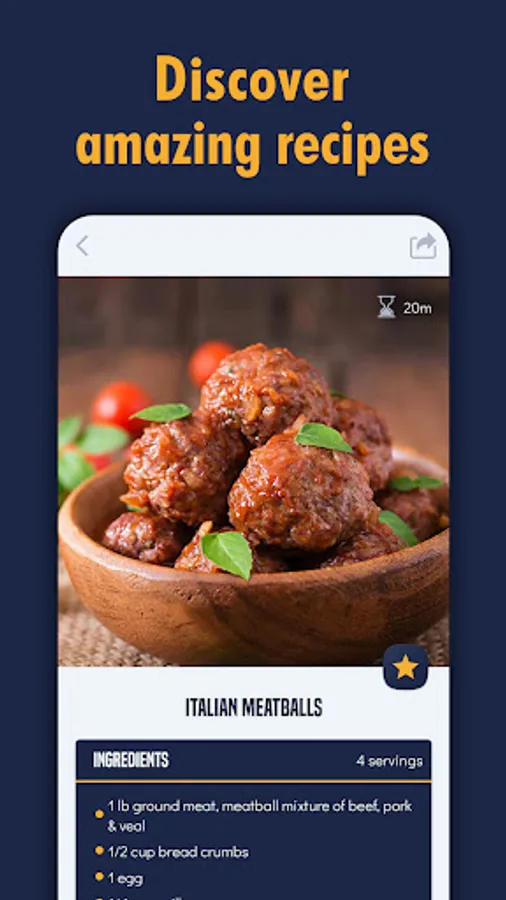 - Favorites list– just hit a “star” button and the recipe will be added to your favorites!