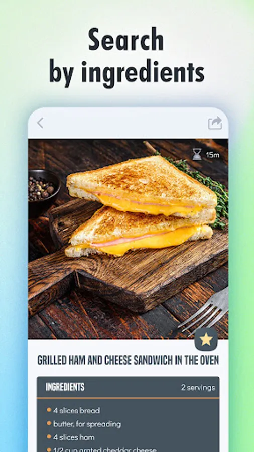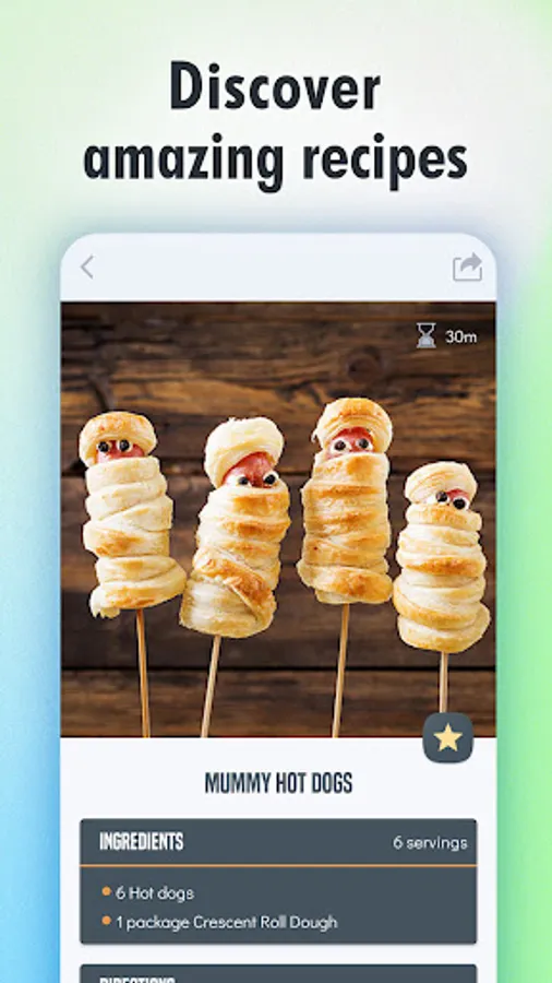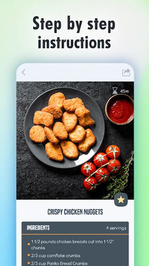 - Favorites list– just hit a “star” button and the recipe will be added to your favorites!