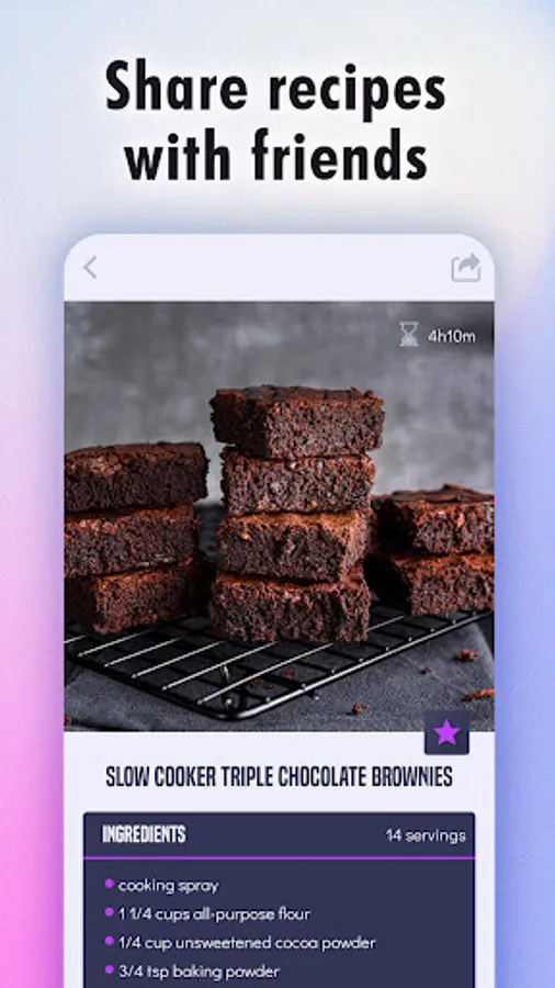 - Favorites list– just hit a “star” button and the recipe will be added to your favorites!