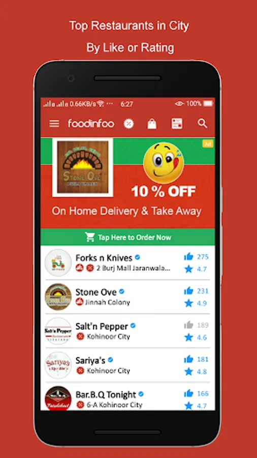 ★Top Restaurants offer Home Delivery Order by Likes and Rating