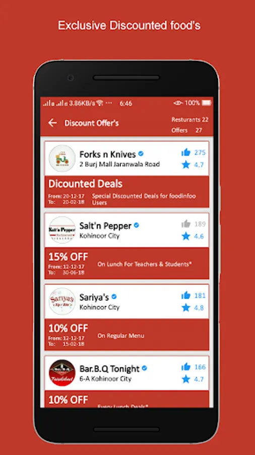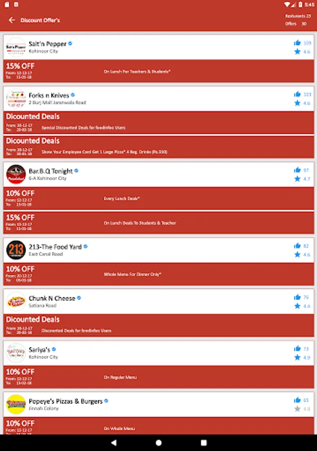 One can search deals offered by all nearby restaurants or receive pop ups also