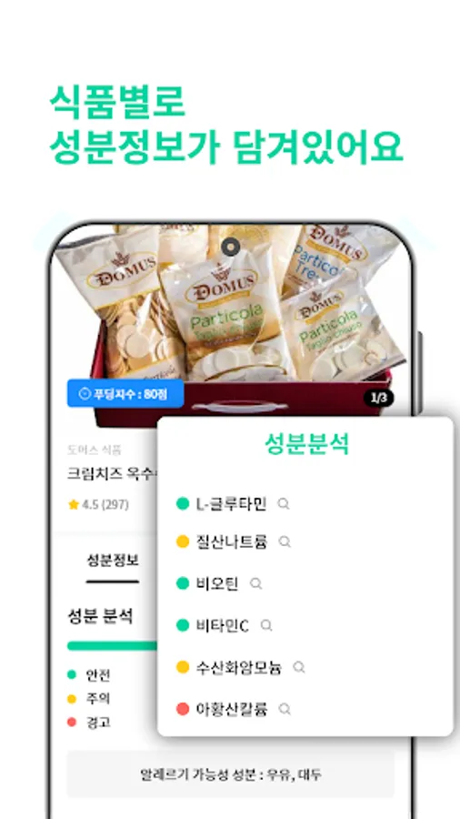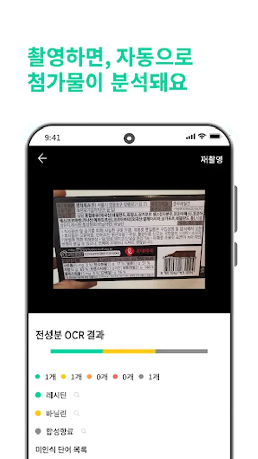 You can check the information of all ingredients and additives of various foods. Additives are analyzed in a total of 4 grades,