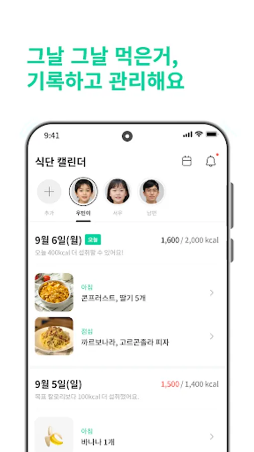You can record the foods you ate that day through the ‘Meal Calendar’. In addition, the ‘Food Calendar’ has an automatic calorie counting function and a target calorie amount can be specified, helping diet and health management.