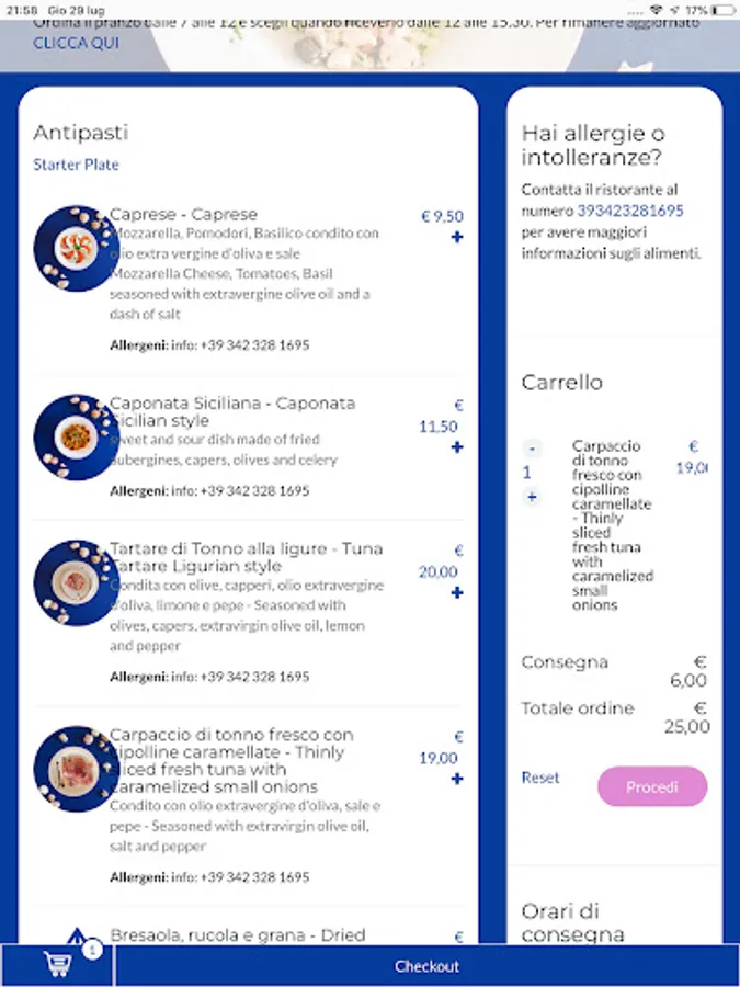 - Choose the restaurant to order from and the dishes you want to enjoy on board.