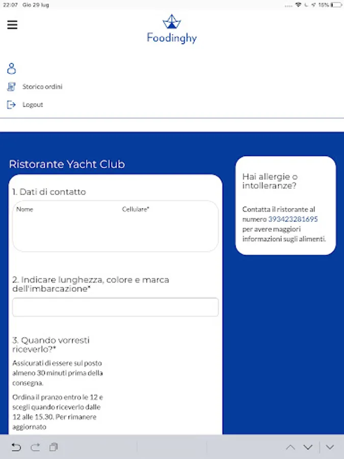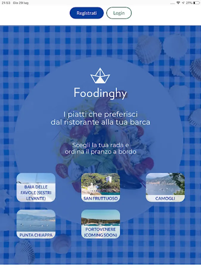 Download the free Foodinghy app and order your favorite dishes directly on board.