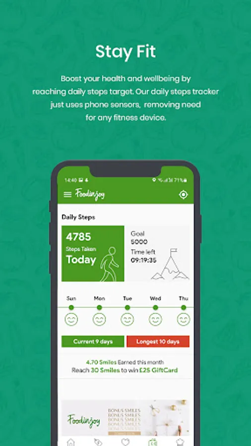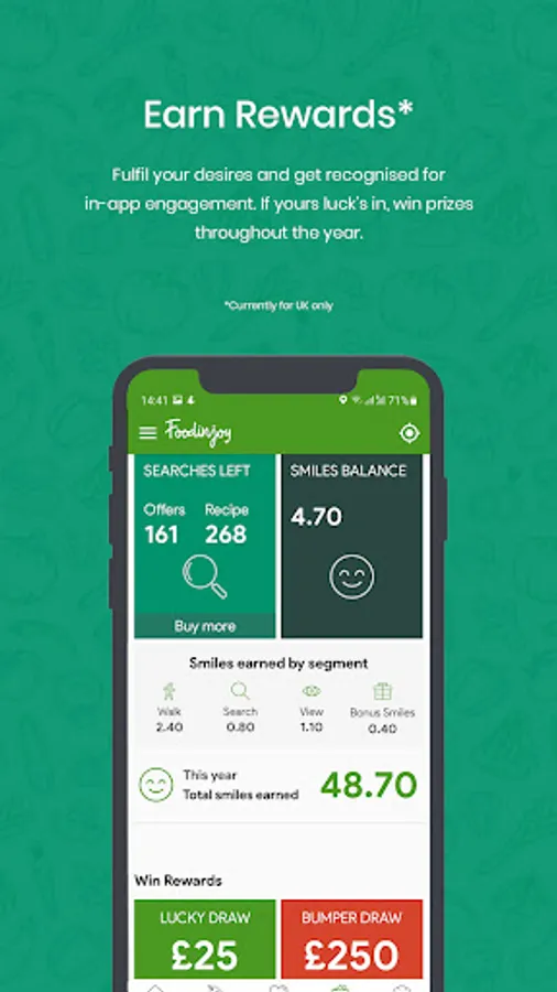 - Earn Rewards from daily steps taken, browsing offers and recipes
