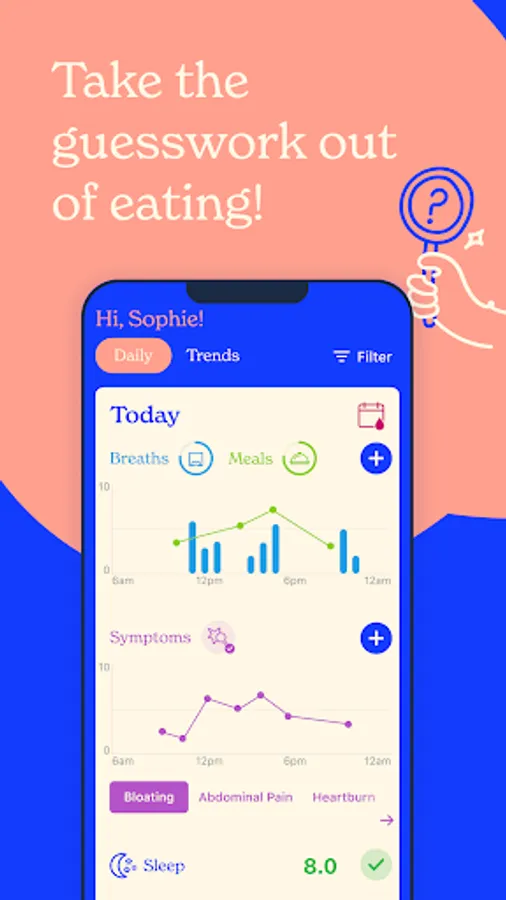 The AIRE app enables you to take control of your digestive health by tracking key factors, such as what you eat, your sleep and stress levels and symptoms that you experience. Combined with the AIRE breath analyzer, this app also allows you to measure how well you absorb key foods, by breathing into the device at specific times after eating.