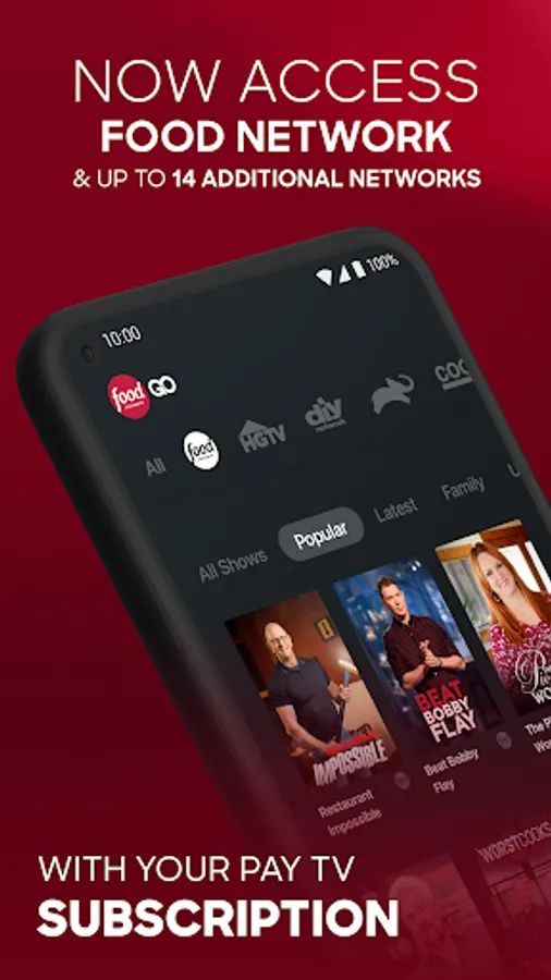Catch up with your favorite Food Network shows anytime, anywhere with the all-new Food Network GO app - and now get access to up to 14 additional networks including TLC, Discovery, HGTV, Science Channel and more - all in one app. It’s FREE with your pay TV subscription.