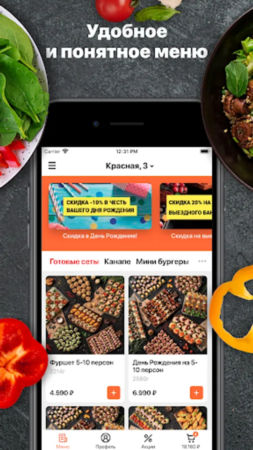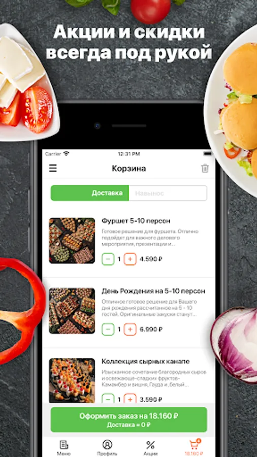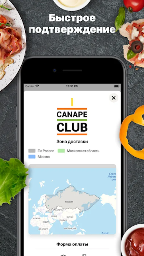 The application for the delivery of buffet meals from Canape Club is a modern and convenient way to organize a festive table anywhere in Moscow!
