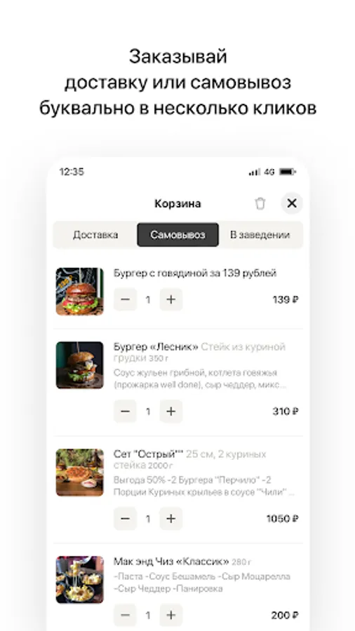 - Quick order with instant confirmation through the app.