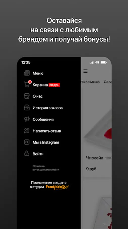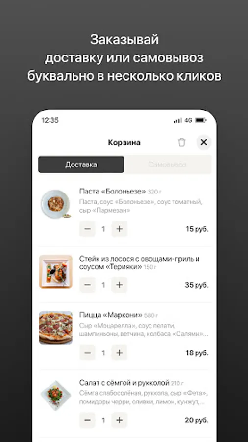 Delivery of salads, hot dishes, drinks, desserts, pizza in Gomel.