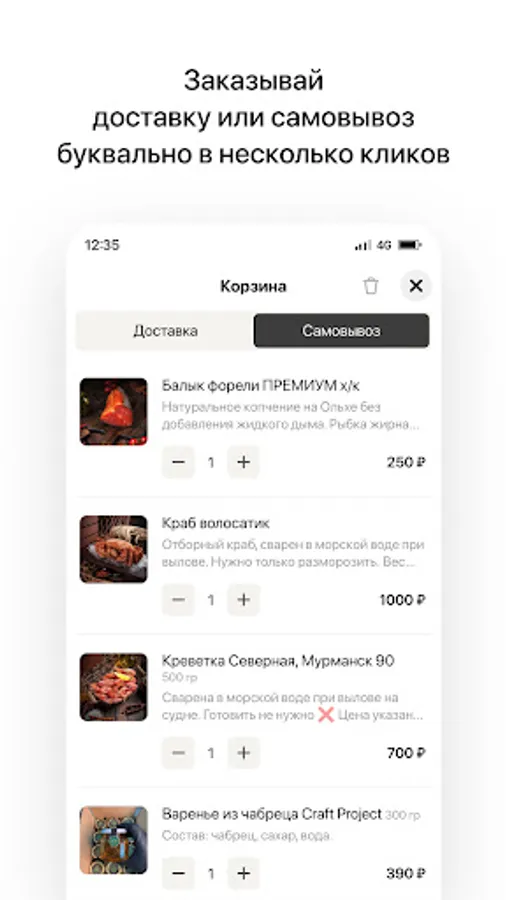 "Sea Gourmet" - an application for the delivery of fresh seafood, exclusive delicacies and premium semi-finished products.