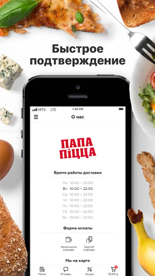 "PAPA PIZZA" application is an application for food delivery in your city!