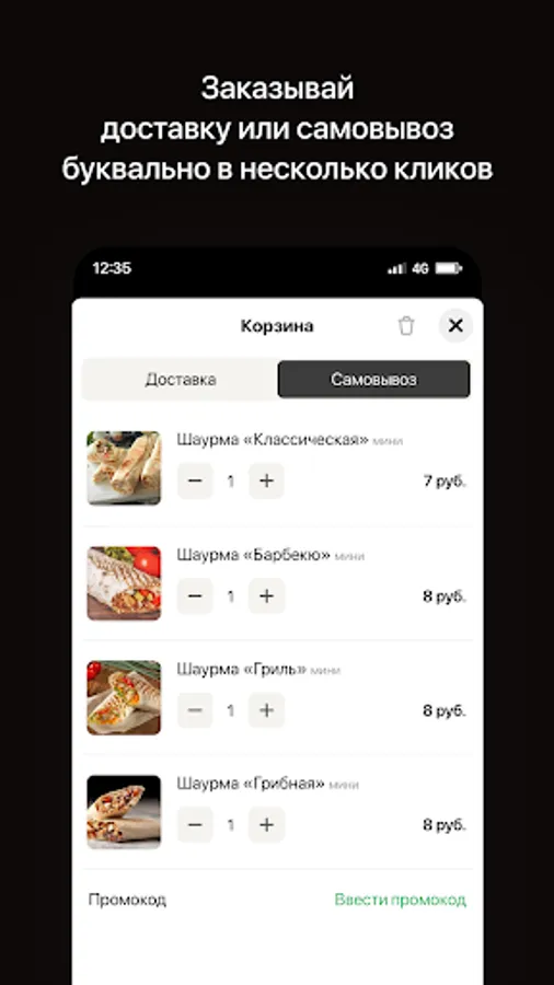 - Quick order with instant confirmation through the application.