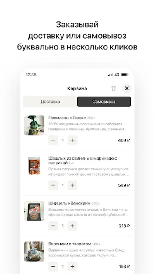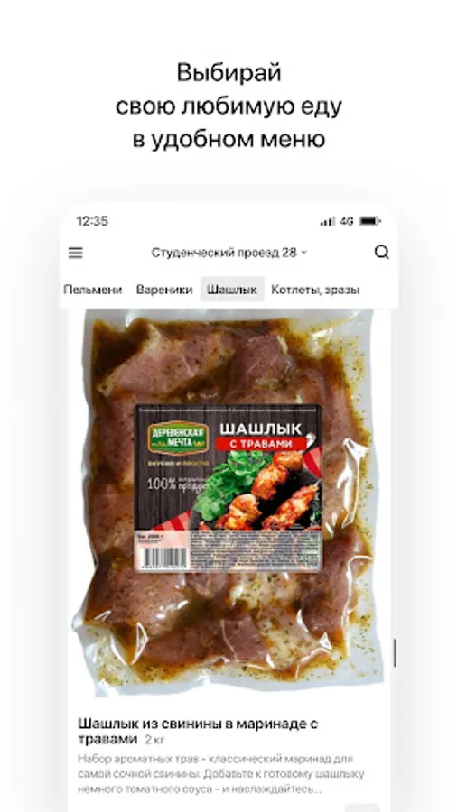 Dumplings, chebureks, dumplings, cheesecakes, meatballs, cabbage rolls, manti, sausages and much more. We use only selected beef and pork. Place an order through the application and please yourself and your loved ones with delicious and healthy products. And with our application, ordering has become even easier and more convenient.