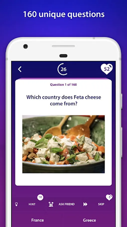 π₯ Here's a little something for all gourmets with a refined palate! Food Quiz trivia game is a brand new quiz app with many different food and drink quiz questions you will simply enjoy answering! There are many guess the food types of quiz games out there, but this international food trivia game is UNIQUE! Well, we at least think so. Besides answering guess the food quiz questions, you will have an opportunity to answer true/false questions and multiple choice types of questions about many different cuisines worldwide. So, are you ready? Test your taste buds and show off your gourmet skills! Download Food Quiz trivia game and get a certificate proving that you really are an epicure! π₯