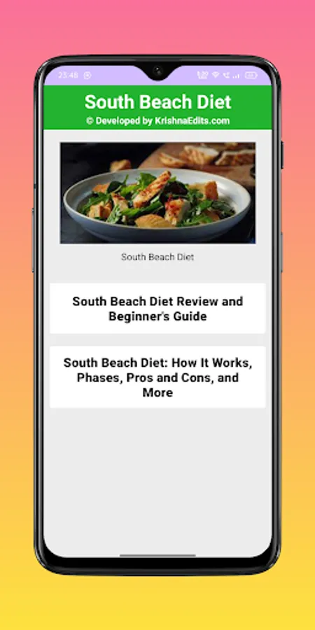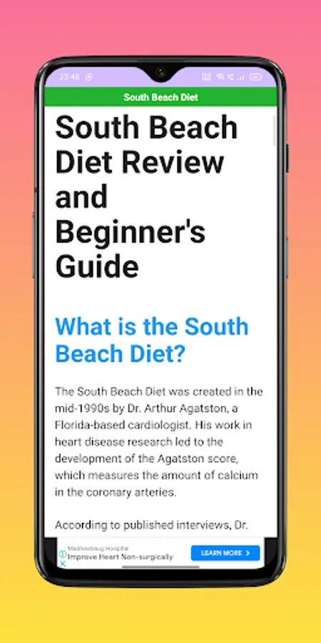 The South Beach Diet is a popular fad diet developed by Arthur Agatston and promoted in a best-selling 2003 book. It emphasizes eating food with a low glycemic index, and categorizes carbohydrates and fats as "good" or "bad"