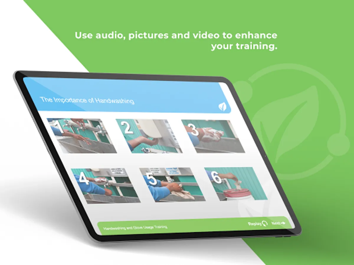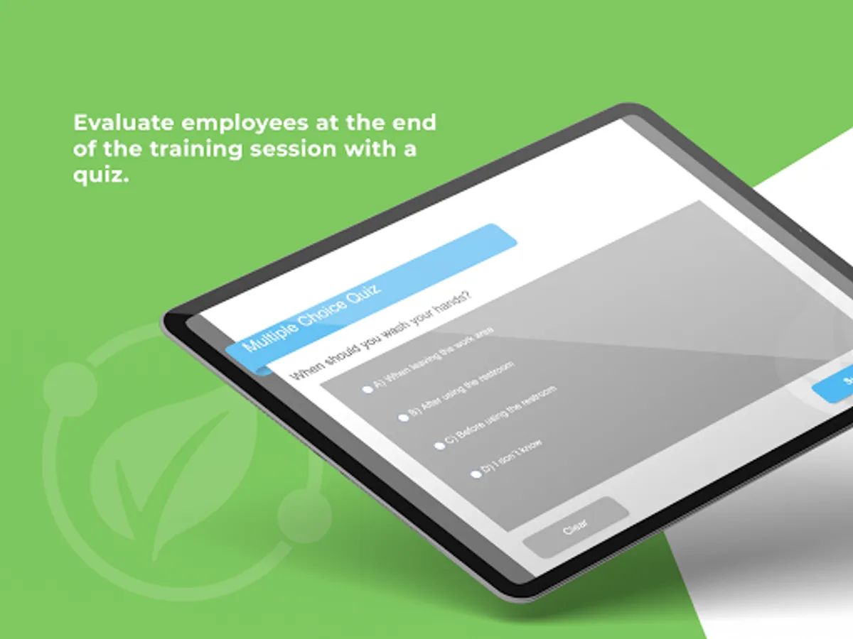 The app includes several interactive activities and a video clip to keep participants engaged throughout the lesson. At the end of the lesson there is a simple quiz to verify that the student retained the information that was taught.