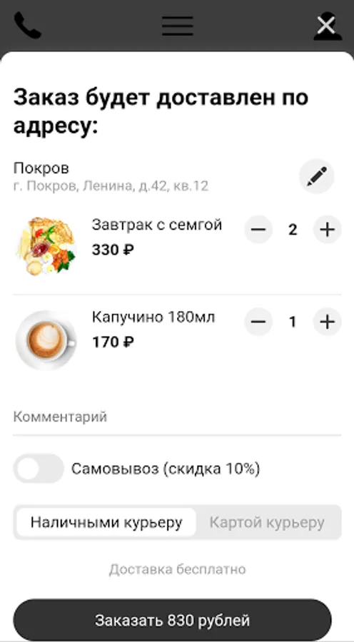 We deliver food to your home or office, even to remote areas of the city.