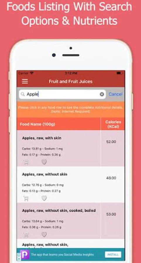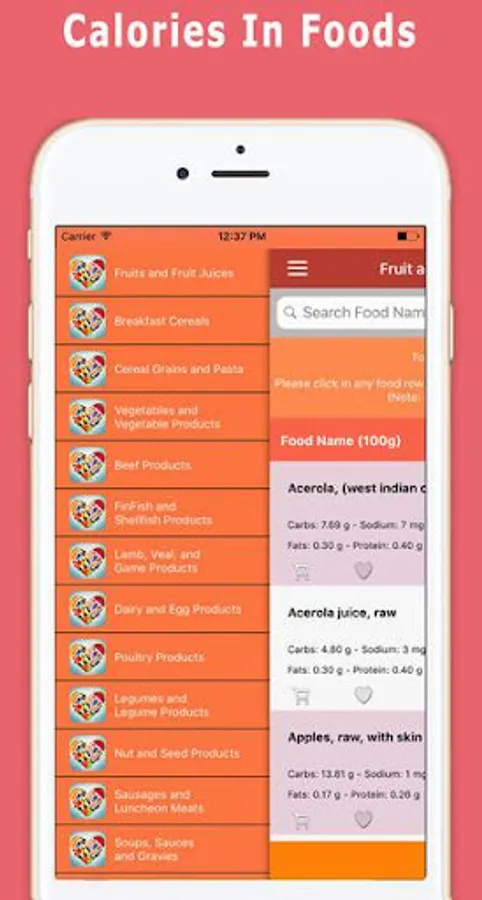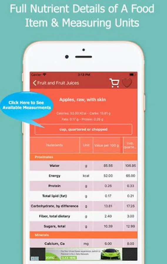 1. Select any food item on foods listing page and it will take you to the detailed view of foods all nutrients.