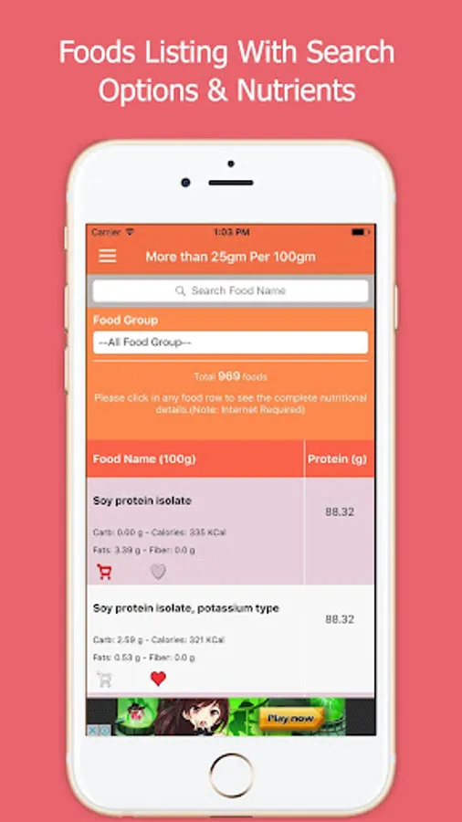 Foods are listed in order from highest Protein amount to lowest. The quantity of Proteins will be based on 100 grams of each food on foods listing page.